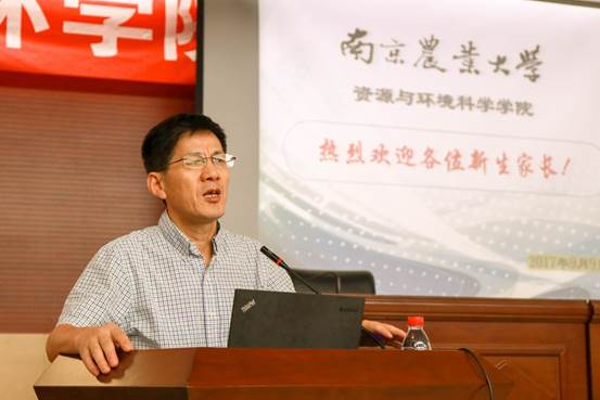 9月9日下午16时,资环学院2017级新生家长会在资环楼报告厅举行。资环学院院长徐国华,党委副书记崔春红,副院长李荣,团委副书记王未未,辅导员李颢、孙国成,新生班主任以及一百余名2017级新生家长参加了会议,会议由崔春红老师主持。