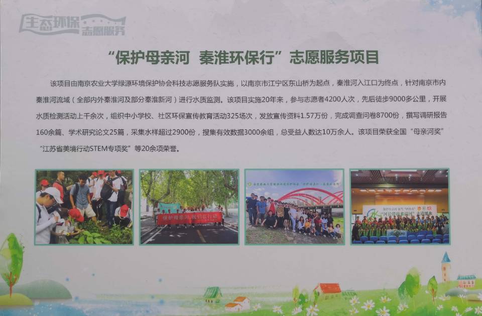 20年来,绿源环境保护协会科技志愿服务队一直坚持“热爱自然、投身环保、服务社会”的初心,秉承“勤俭节约、热爱自然、关注环保、支持环保、服务环保”的宗旨,积极响应国家坚持绿色环保、保护自然环境的号召,利用学科专业优势,充分发挥南农学子的责任使命感,努力唤起社会各界保护母亲河的意识,为改善秦淮河的生态文明建设贡献力量。南农资环学子一直牢记“坚持”和“传承”两词,用脚步丈量秦淮河畔,用热情带动身边的人加入到环保志愿者的行列中去,普及和传播环保理念,努力成为新时代“绿水青山”的建设者。