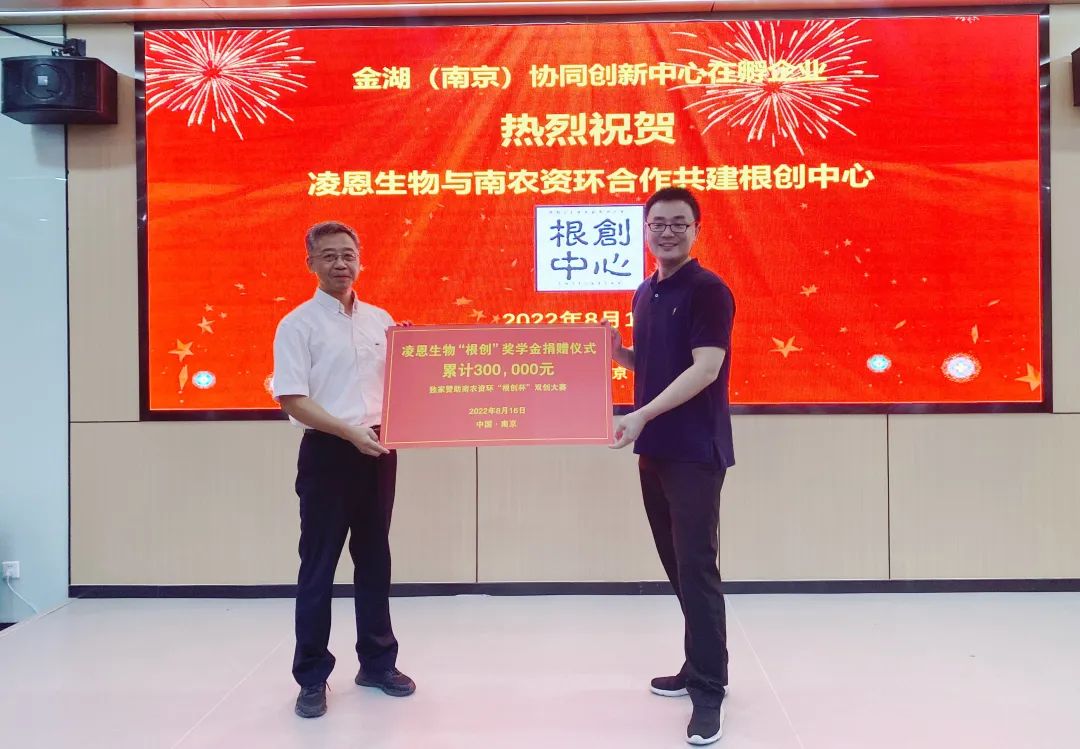 在共建仪式上,凌恩生物在2020年捐赠10万元的基础上,再次捐赠20万元设立“根创奖学金”,用于支持资环学院大学生创新创业和科普创作活动。