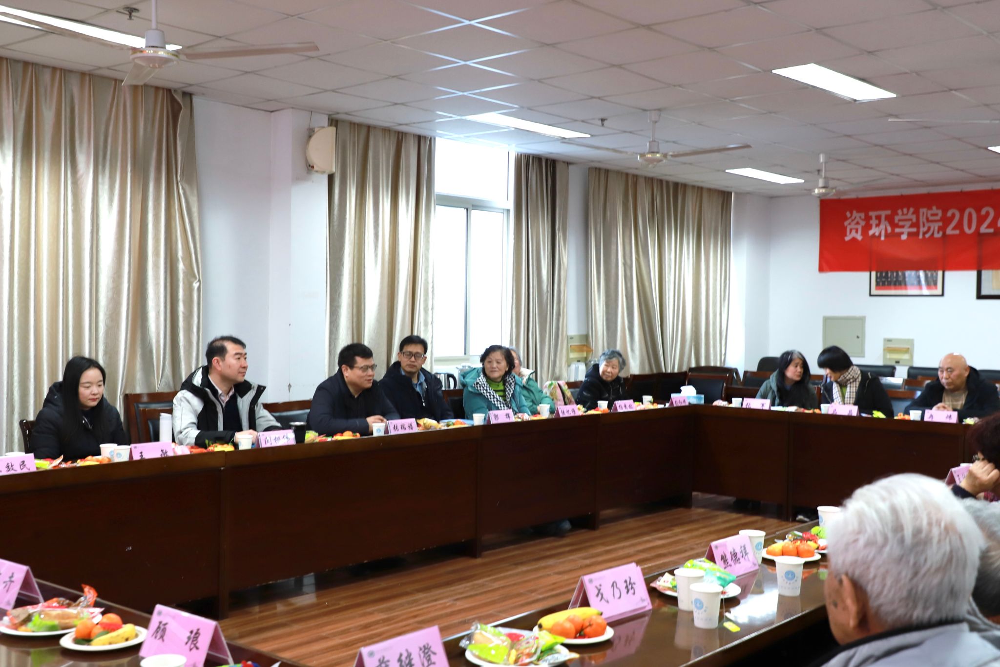 1月15日上午,资环学院退休教师座谈会在资环楼B211举行。院长张瑞福、党委副书记闫相伟、王敏、郭辉,与退休教师代表齐聚一堂,同叙情谊,共话新春。
