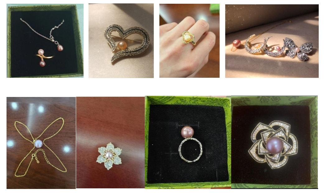在大家的不懈努力和灵巧双手的配合下,一颗颗颜色各异、大小不一、形状不同的珍珠出现了,一颗大珍珠或者一群小珍珠,都是盲盒带给大家的乐趣。开完河蚌取到珍珠之后,大家通过在珍珠粉中浸泡、手工揉搓、选取与珍珠完美搭配的项链、戒指、胸针等进行DIY,一件件艺术品呈现出了最美的状态。