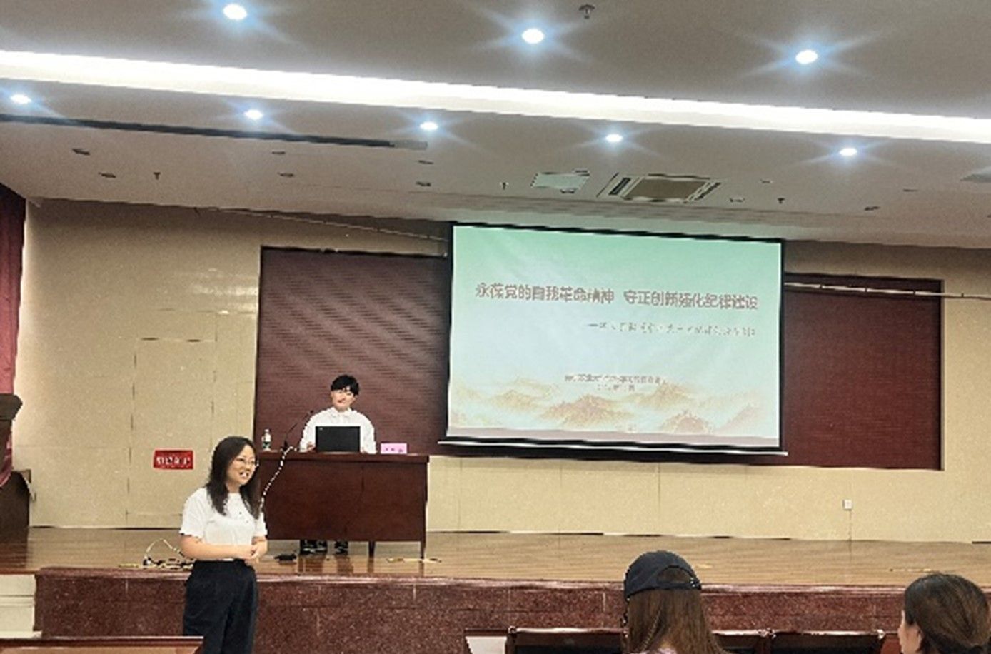 6月5日,为深入贯彻习近平总书记关于党的自我革命的重要思想,进一步推动党的纪律建设,党员陆文涛老师为全体资环学院预备党员开展了一场以“永葆党的自我革命精神 守正创新强化纪律建设”为主题的培训报告。