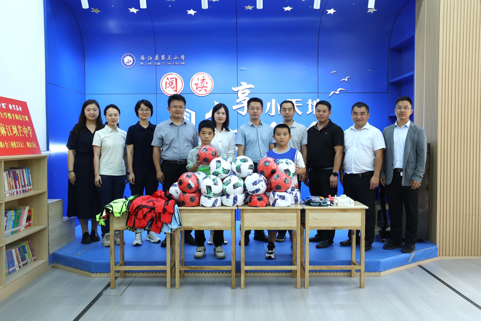 孙笑逸代表资环学院向麻江县捐赠木霉有机肥5吨、木霉叶面肥150袋,向麻江县第三小学捐赠足球等少儿体育用品。