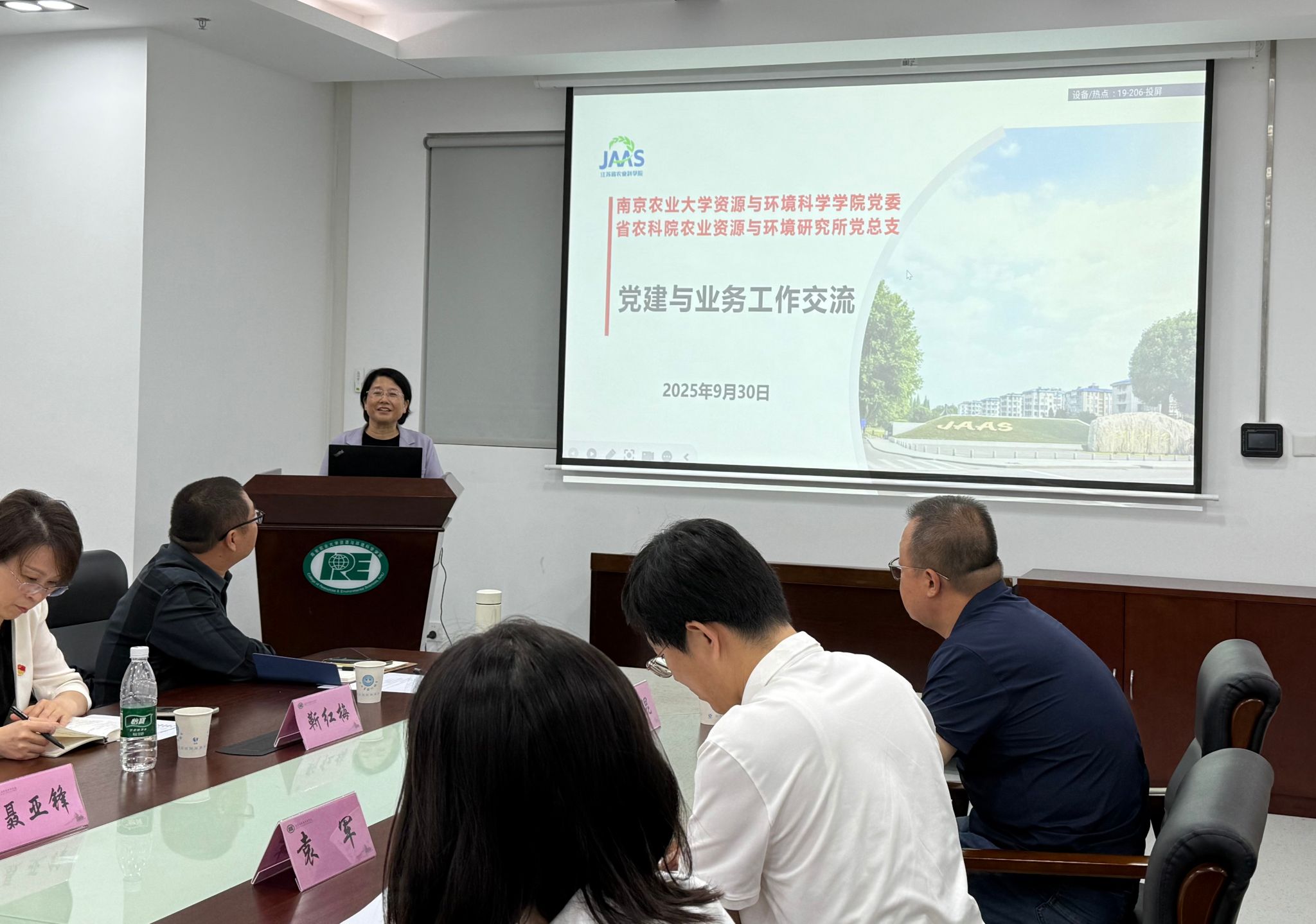 马艳书记表示,江苏省农业科学院资环所一直致力于农业资源与环境领域的研究与创新,在推动农业可持续发展方面承担着重要责任。南京农大资环院将党建与科研深度融合的模式非常值得研究,通过党建活动激发教师的科研热情和社会责任感,为学科发展注入了强大的精神动力。她希望双方能够建立常态化的交流机制,定期分享党建和科研工作经验,共同探索在新时代背景下以高质量党建引领农业资源与环境领域的高质量发展。