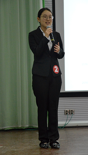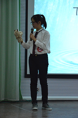 资环151的邓钰华同学以“How NJAU has changed me”为主题,向大家讲述了她在这两年的南农生活中的成长历程。来自环科151的沈越同学将自己失败的演讲经历作为开场白,又接连引用J·K罗琳、亚伯拉罕·林肯的故事,来告诉大家面对失败不要郁郁寡欢,而是要从中汲取经验以期下一次的成功,就像她的演讲主题“Just say hi,give it a hug and then learn from it”。电影配音环节中,沈越同学用流利又富有感情的英语为电影《马达加斯加企鹅》中的一个片段配音,获得了全体在场老师同学的掌声。才艺展示环节,一曲The show 伴随着大家有节奏的掌声,将全场的气氛推向高潮。评委提问环节,她从容应对,赢得了全体评委的一致好评。资环131的孙光稷同学,利用“Simulation Theory”对自己的观点“What we do Affects the outcome”加以佐证,令大家眼前一亮。评委提问环节,他用幽默的方式表达了他对美国大选的看法,令大家忍俊不禁。来自资环162的闾婧妍同学,一开场就用发音准确,吐字清楚的英语折服了到场的观众和评委,她多次说道“This is my university”,字里行间透露出她对玩偶姐姐
