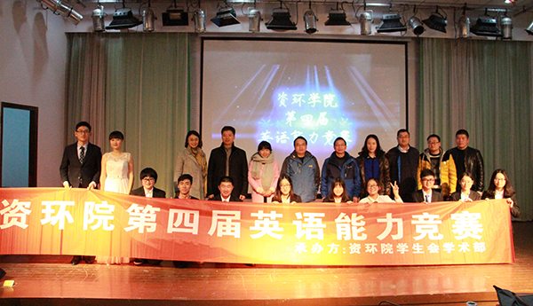 2016年11月23日18时30分,资环学院第四届英语能力竞赛在教四楼报告厅举行。出席本次比赛的评委有资环学院党委书记李辉信,国际教育学院副院长童敏,外国语学院党委副书记董红梅,资环学院副院长邹建文,资环学院副院长李荣。出席本次比赛的嘉宾是资环学院党委副书记崔春红。