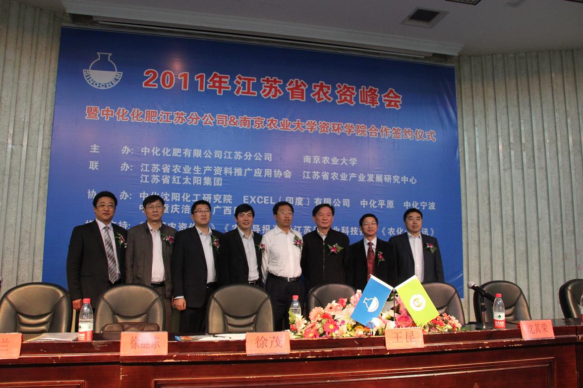 副校长沈其荣、江苏省农林厅土肥站站长徐茂、资环学院党委书记李辉信等出席此次签约仪式。来自江苏各地的200多名农药、化肥经营者、资环学院部分教师学生代表参加了签约仪式。会议由中化化肥江苏分公司总经理朱年祥主持。