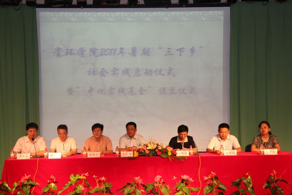 7月8日下午三点,资环学院暑期社会实践启动暨 “中化”实践基金设立仪式在教四楼报告厅隆重举行。院党委书记李辉信、院长徐国华、院党委副书记崔春红、环境科学与工程系教师胡忠明、朱雪竹及中化化肥有限公司江苏分公司总经理朱年祥出席并参加了启动仪式,参加此次仪式的还有资环学院100多名学生。仪式由院党委副书记崔春红主持。