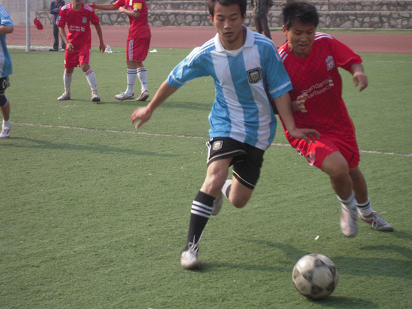 下半场比赛开始,队员们体力都有不同程度的下降,但他们仍在场上奋力角逐。下半场比赛进行到一半时,公管院将比分扳平,也将比赛带入白热化。双方队员踢得更加卖力,你方一个扫射,我方一个弹踢,球在场上被顶起,踢出,弹回。在距离比赛结束还有5分钟时,资环院22号张军再进一球,资环院的观众顿时沸腾了,鼓声,喝彩声此起彼伏。比赛的胜负至此已十分明显,但资环院的队员们并不懈怠,还是尽全力踢完整场比赛,不给对方任何反击的机会。资环院最终以2:1的比分赢得本场比赛的胜利。