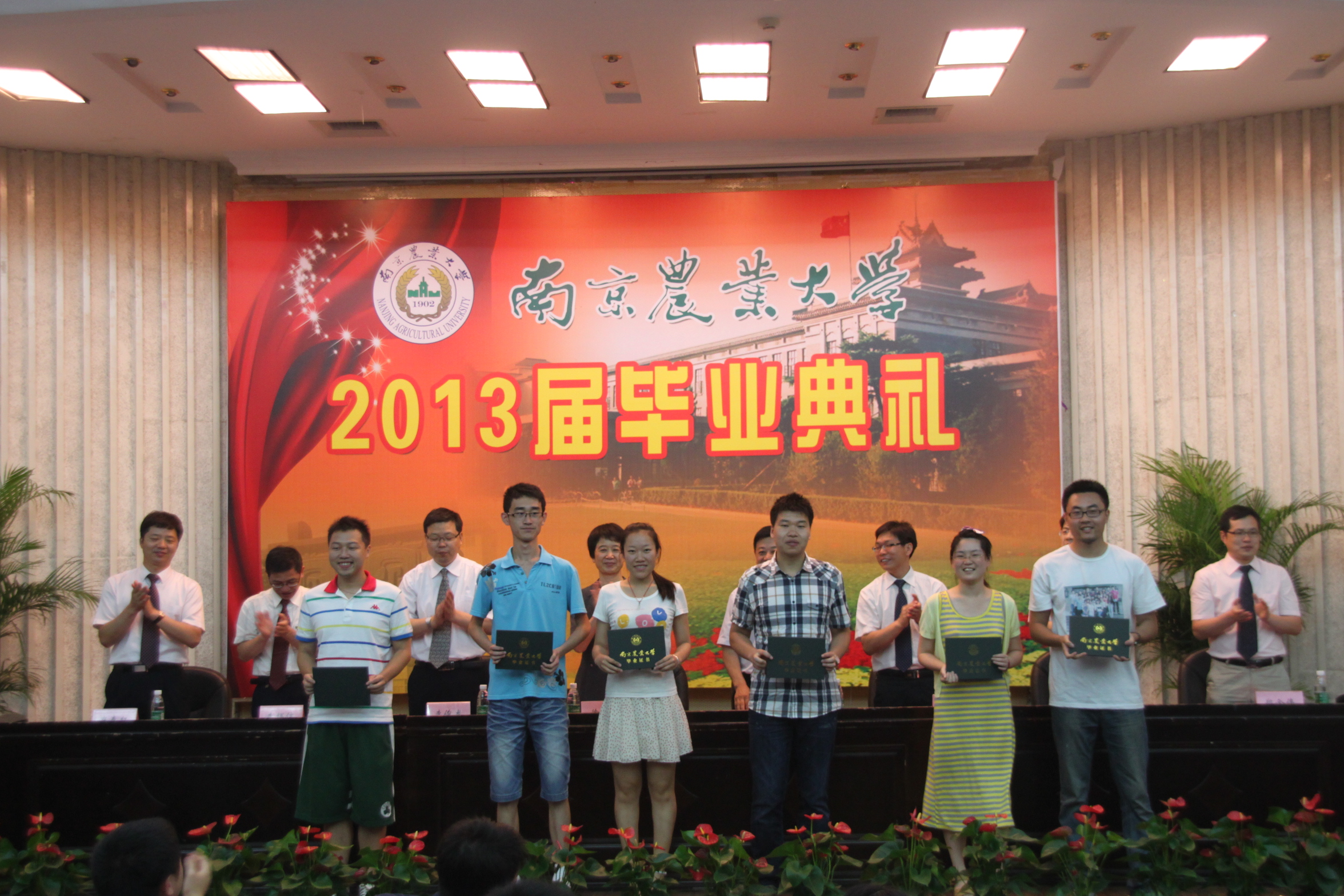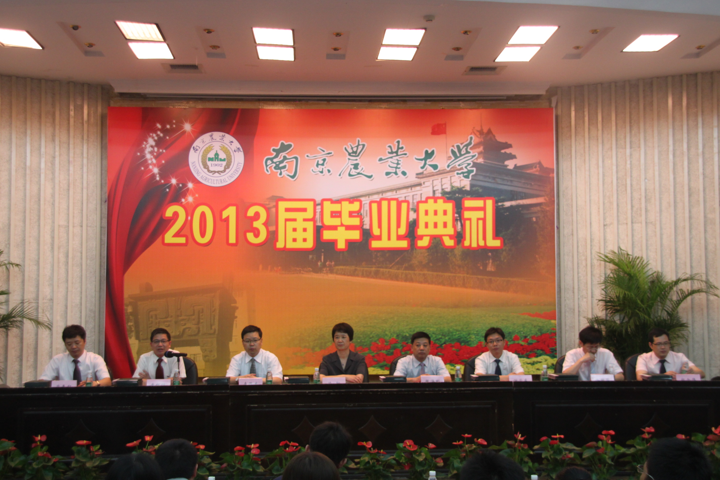 2013年6月21日下午两点,资环学院在图书馆报告厅举办了2013届本科生毕业典礼。校党委常委、副校长徐翔教授,校发展委员会办公室主任张海彬教授,教务处副处长李俊龙研究员,资环学院98届校友、江苏省政府办公厅谢学东副处长,资环学院院长徐国华教授,资环学院副院长郑金伟副教授,资环学院党委副书记崔春红老师出席典礼并为毕业生颁发毕业证书。参加本次大会的还有毕业班班主任和2013届毕业生,典礼由资环学院党委书记李辉信教授主持。