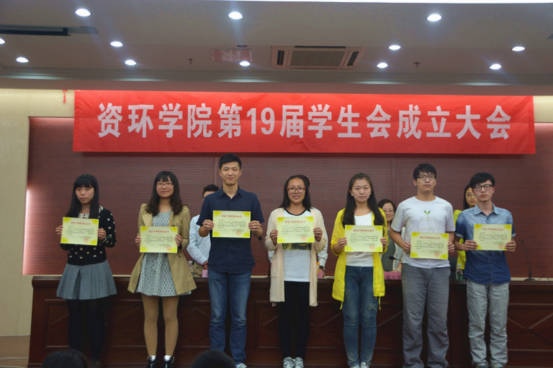 2014年10月11日晚七点,在庄严的国歌声中,资环学院第19届学生会成立大会在资环楼报告厅隆重举行。院党委副书记崔春红,院团委书记万小羽,院团委副书记李长钦及第18届学生会干部代表,19届学生会全体成员参加了此次大会,会议由辅导员王未未主持。