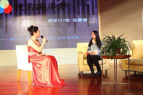 作为科技创新类代表的杨佳莹,分享了她的创行世界杯、全国挑战杯之旅,讲述她的经历和感受的同时也告诉大家参赛背后的故事。多重赛事培养了她的责任感,成就了团队的荣誉感,她希望同学们给自己创造更高的平台,用一颗不平常的心去留心和思考生活。