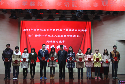 第19届"黄瑞采教授奖学金"暨资环学院名人企业奖学金教金、英语能力竞赛颁奖典礼于大学生活动中心举行。江苏省农科院书记,黄瑞采教授奖学金基金理事长严少华,中科院南京土壤研究所书记蔡立,黄瑞采先生的家属代表黄克明,玩偶姐姐