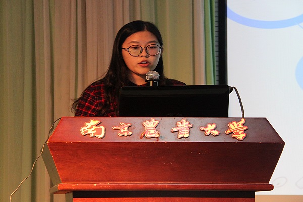 来自园艺144班的梁冬怡同学为大家介绍了加州大学戴维斯分校的情况以及该寒假交流项目的具体内容。她用自己的亲身经历鼓动同学们努力争取对外交流的机会。并引出了One Health Club,由动科144班刘梦瑶同学进行One Health——“万物健康”的理念展示。她为同学们讲述了One Health的由来、发展以及存在的原因,引用了具体的例子阐释了环境、动物与人类健康的相关性,并鼓动同学们加入One Health NAU的事业中。