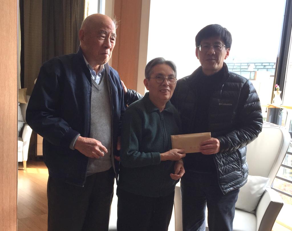 最后,院领导一行去看望了未参会的鲍士旦老师、曹翠玉老师。曹翠玉老师非常关注学校和学院的发展,关心学院学生的成长,并捐助1万元奖学金。