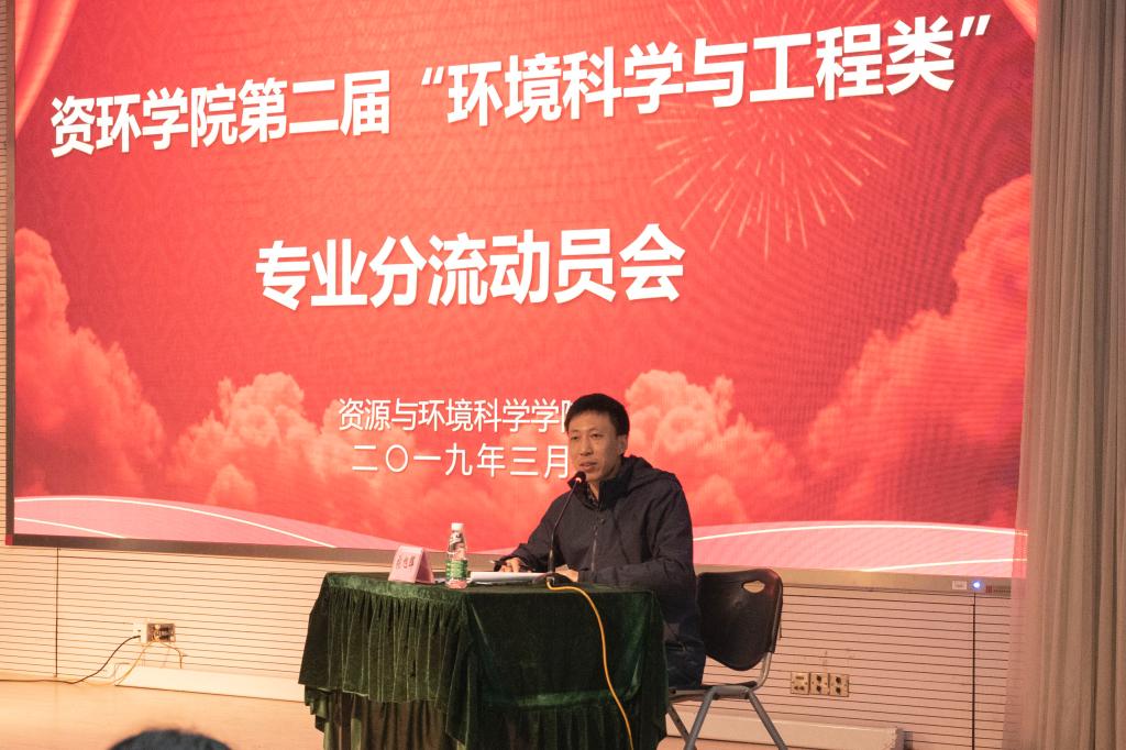 会议伊始,邹建文围绕“资环学院是什么样的学院、有哪些本科专业、本科生培养目标、毕业生如何”四个方面给同学们做了内容丰富的动员报告。他强调资环学院是一个具有悠久历史沉淀、拥有国家“双一流”建设学科、处于全国领先和国际学术前沿的研究型学院。他就专业内涵和发展前景等方面详细介绍了农业资源与环境、生态学、环境科学、环境工程四个专业的基本情况及本次专业分流的基本规模。邹建文表示,每个人应当找到自己未来发展的方向并且选择适合自己的道路,用兴趣驱动认知,构筑事业。他以时代楷模黄大年为例,指出资环学院将以培育出有文明素养、爱国情怀、国际视野、责任担当、专业技能的本科生为目标,从各个专业领域培养出服务于国家的高层次研究型人才。报告最后,邹建文对学院历届毕业生的毕业去向做了简要分析,并以优秀毕业生事迹激励同学们在学业上有所追求。