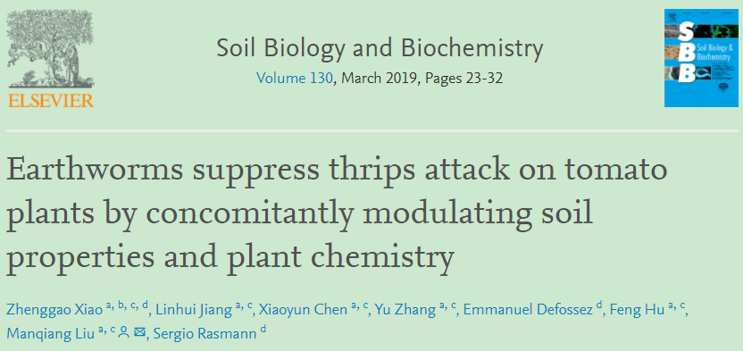 该研究结果近期发表在Soil Biology and Biochemistry,博士研究生肖正高为第一作者,刘满强为通讯作者,瑞士纽奇大学(University of Neuchâtel)的Sergio Rasmannd为合作者。该工作受到国家自然科学基金、国家重点研发计划、中央高校基本业务费等资助。