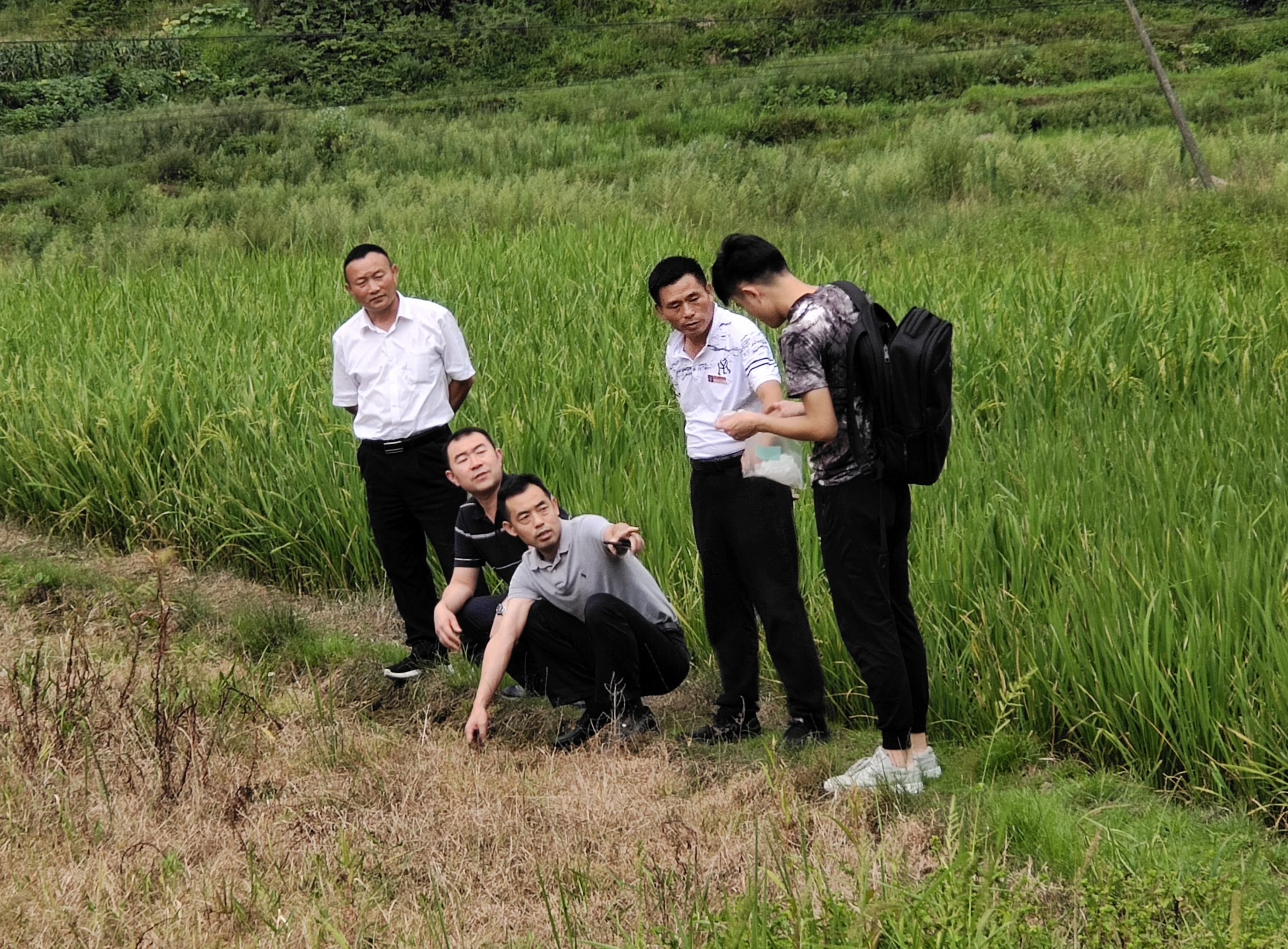 8月8日下午,郑聚锋教授带领研究生团队在新场村开展生态环境调研,对当地“冷烂锈田”进行实地考察。据麻江县农业农村局党建办主任李茂贵介绍,“冷烂锈田”在麻江县低海拔地区广泛存在,该土壤有机质含量低,土壤团聚结构差,给当地农业生产带来不良影响。调研队现场对土壤和水源进行取样,以期帮助当地发挥生态优势,实现可持续发展。