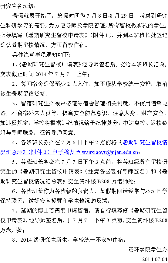 上一篇:2014年暑期毕业研究生派遣工作安排