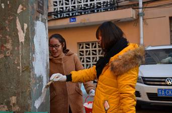 为进一步改善学校周边社区的环境面貌,营造优美洁净的市容环境,12月6日,志愿者服务中心组织资环学院志愿者以清理鲁迅园社区环境卫生为突破口,召集10余名志愿者开展了义务劳动。此次活动以社区院内及楼道内非法小广告和进行社区卫生清扫为主,为社区环境美容。