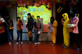 总结结束后,主席团以一首资环学生会版的《青春修炼册》拉开“Xin”的旅程晚会序幕。志服部的《志服IT》,文娱和新媒的《咯咯哒》,人资和学通的《Bonkigen》,以及体育和组织部的《美女与野兽》都以多类型的舞蹈展示了学生会成员们的风采,其或活力四射或可爱或滑稽的风格都博得了观众阵阵掌声,赢得了观众阵阵好评。生活和科创中心结合朗诵及舞蹈别出心裁地将当下热歌《我的滑板鞋》表现的淋漓尽致,引得观众捧腹大笑。晚会更设交换礼物和互动游戏两个环节,加强成员交流,互相赠送祝福。