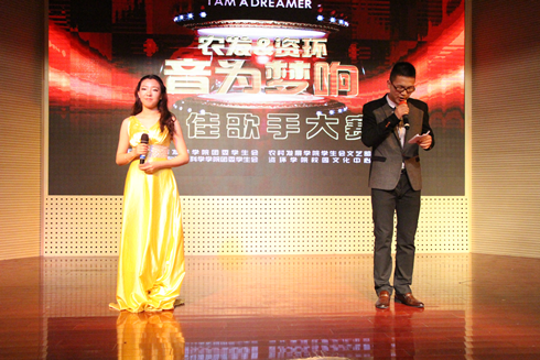 3月31日晚7点,大学生活动中心星光闪耀、歌声飘扬,由资环学院和农发学院共同举办的2015"音为梦响"十佳歌唱大赛成功举办,资环学院党委副书记崔春红、农发学院党委副书记冯绪猛、校团委校园文化部部长朱媛媛、农发学院辅导员裴海岩、资环学院辅导员王未未出席并担任了本次比赛评委。