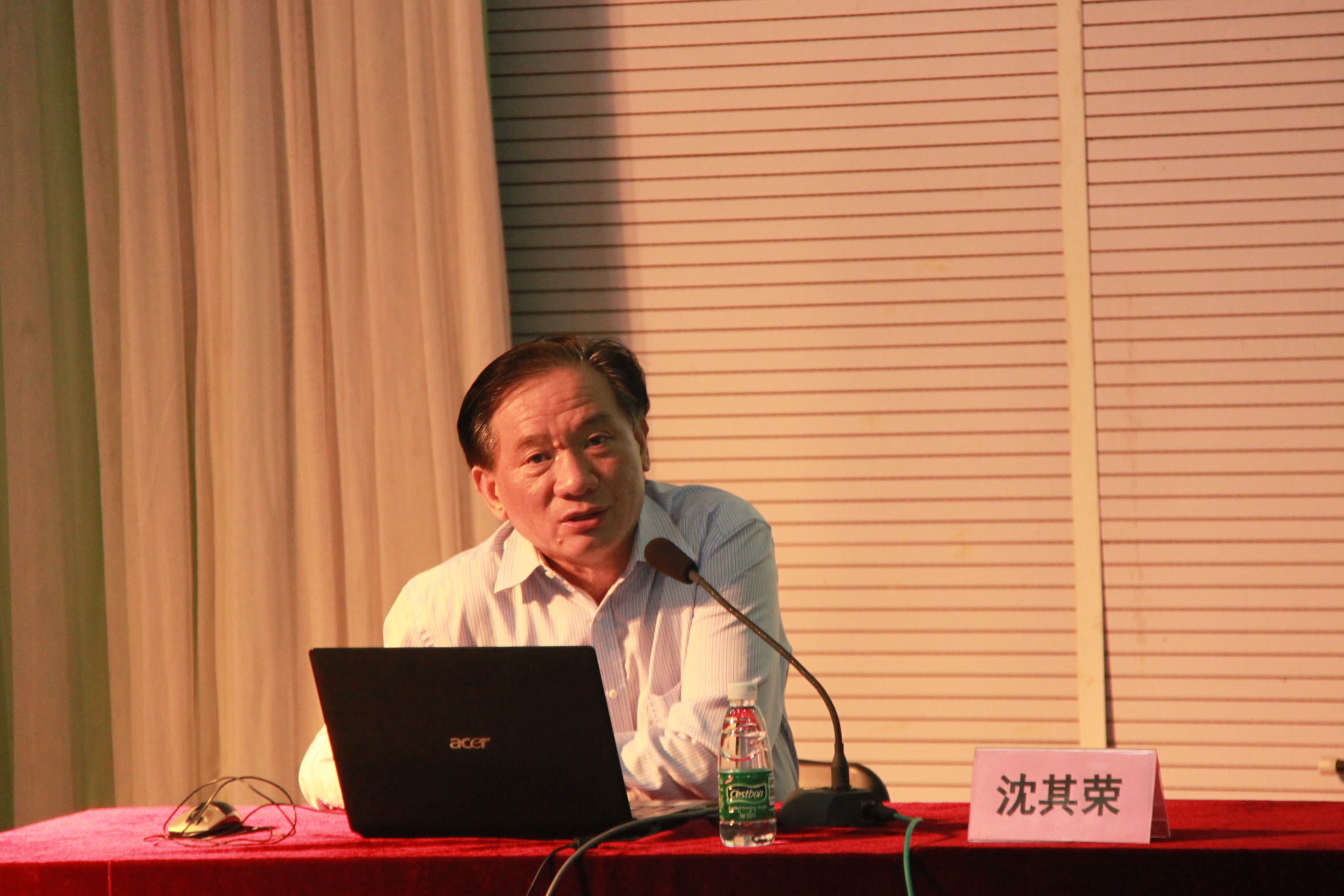 2015年5月7号晚7点,我校第十一届“神农节”五大学部——生物环境学部专家讲座在教四楼报告厅准时开讲。讲座邀请到国家教学名师、资环学院植物营养学学科带头人沈其荣教授主讲,资环学院党委副书记崔春红出席讲座。本次活动由校研究生工作部和校研究生会主办,资环学院研分会承办。本场讲座的主题是“抓住学科前沿,围绕国家需求,与南农大研究生共勉”,在沈其荣教授精彩报告之后设置现场提问环节。