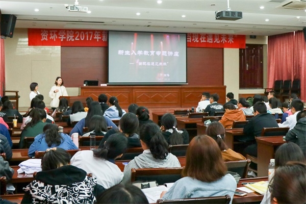 大学生心理健康教育中心主任的徐梅老师作为主讲,资环学院团委副书记王未未老师、2017级各班同学参与了这次讲座。