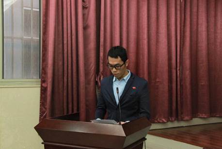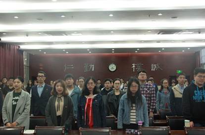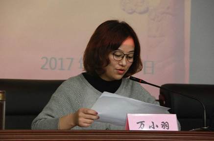 合唱完毕后,资环学院团委书记万小羽宣读2017年第二期分党校学习计划。她提到:在本学期接下来的时间内分党校会围绕十九大相关专题内容,开展“十九大专题学习”、“党员实践学习”、“十九大相关讲座”、“你好新时代,携手再出发”主题行思教育周等活动。举办活动要保留好的优秀传统也要不断发现新的形式,寓教于乐,使党建教育做到接地气、受欢迎、有意义。