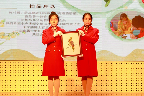 节目过程中,一件件由博爱安养庇护中心、宁声语言与听力康复中心、宁馨阳光家园、凤凰安养中心的学员与各学院志愿者们共同制作的拍品,以及我校关工委陈翔高、校团委李长钦两位老师爱心捐献的拍品,一一亮相舞台。