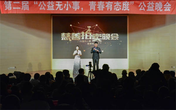 第二届“公益无小事,青春有态度”公益拍卖晚会于大学生活动中心举办。出席本次晚会的领导和嘉宾有,校团委副书记谭智赟、玩偶姐姐