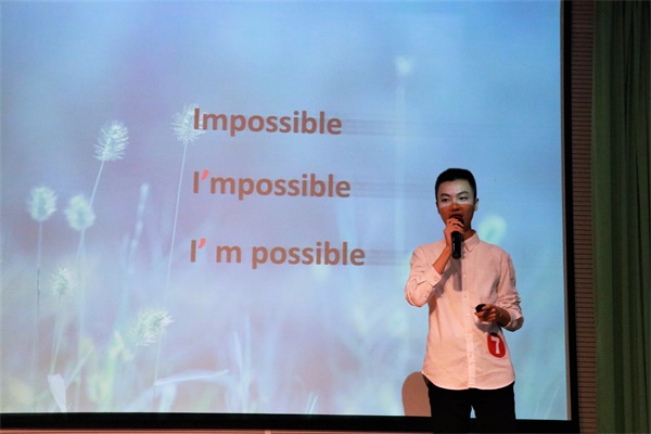 下半场为即兴演讲环节,时间最短3分钟,在这个环节中选手们抽到了各式各样的题目,但是他们都能随机应变,灵活应对。最终,窦雪丹、张未曦和陈天一获得三等奖,陈秋怡、吴洪川获得二等奖,张佳雯获得一等奖。
