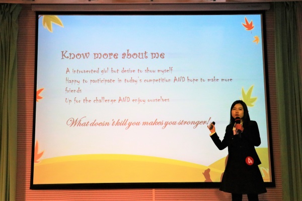 上半场所有的参赛选手两两一组进行PK,分别进行自我介绍、单词速记和新闻播报三个小环节。在自我介绍环节中,选手们都用流畅的英语和独特的方式为大家介绍了他们的姓名,性格和爱好。