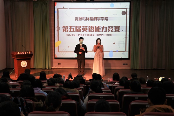 第五届英语能力竞赛在教四楼报告厅举办。莅临本次活动的评委老师有资环学院陆隽鹤教授、外国语学院董红梅副教授、资环学院张旭辉副教授、外国语学院霍雨佳老师、国际教育学院黄笑迪老师。出席本次比赛的嘉宾有资环学院辅导员李颢老师、孙国成老师,以及资环学院各年级同学组成的大众评审。