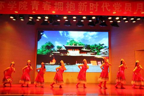 晚会在资环学院艺术团舞蹈团的曼妙舞姿中拉开帷幕,晚会共分为不忘初心、矢志奋斗、共赴新时代三个篇章。