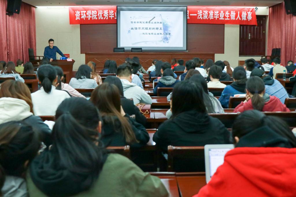 4月4日下午两点,资环学院优秀校友报告会于资环楼报告厅举行,此次报告会邀请南京浩川农业科技有限公司总经理陈旭前来分享关于准毕业生做人做事之感悟,资环学院全体大三学生前往参加。报告会由院团委副书记王未未主持。