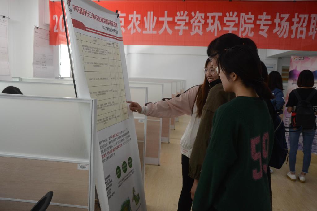 本次招聘会主要面向农业资源与环境、环境科学、环境工程、生态学、土壤学、植物营养学、农业信息学、生物信息学、应用化学等各专业。各单位通过展板、现场讲解、招聘简章的发放等方式向同学们进行相关介绍及答疑。同时,通过交流考察求职者的专业知识、英语能力、沟通能力。