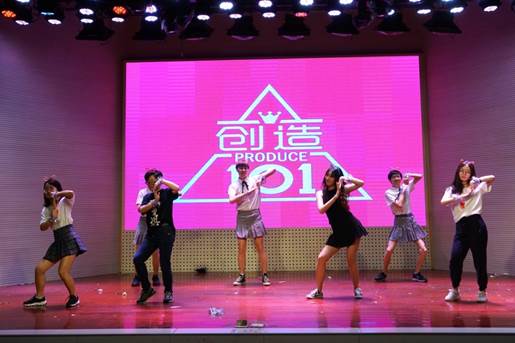 生态141带来的抖音歌曲串烧以及活力四射的“学姐”的反串舞蹈,引起台下观众一阵阵欢呼。