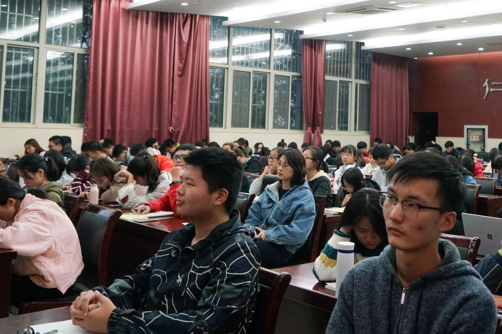 讲座开始,王世伟老师先和同学们做起了游戏,老师凭借幽默的语言,拉近了和同学们的距离。接着王老师指出大学是人生的一个过渡阶段,并向同学们提出了本次讲座的主题——“ 一名心理老师的十项大学建议”。从多个角度出发,帮助同学们分析进入大学可能遇到的各类问题。