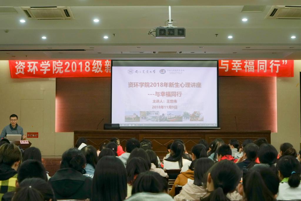 11月9日下午3:50,资环学院2018级新生心理讲座在资环楼一楼报告厅举行。本次活动特邀大学生心理健康教育中心主任、国家二级心理咨询师王世伟老师作为主讲,资环学院团委副书记王未未老师主持本场讲座。