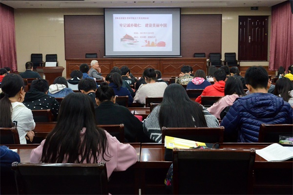 11月13日晚7时,资环学院关工委“牢记诚朴勤人,建设美丽中国”系列活动在资环楼一楼报告厅举行,此次活动邀请了刘德辉教授主讲,院党委副书记崔春红老师、辅导员孙国成老师出席了本活动。