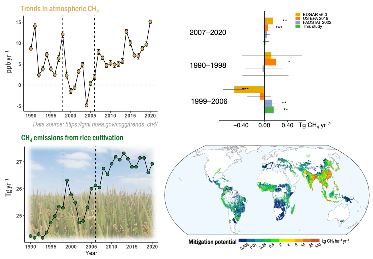 邹建文教授团队在《Global Change Biology》期刊发表了题为“The role of rice cultivation in changes in atmospheric methane concentration and the Global Methane Pledge”的研究论文,解析了全球水稻种植对大气甲烷浓度变化及实现《全球甲烷承诺》的贡献。