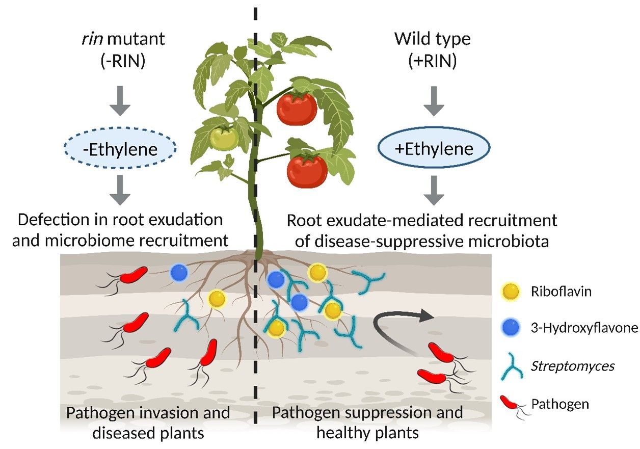 番茄RIN基因调控根系分泌物形成抑病型根际菌群的微生态机制