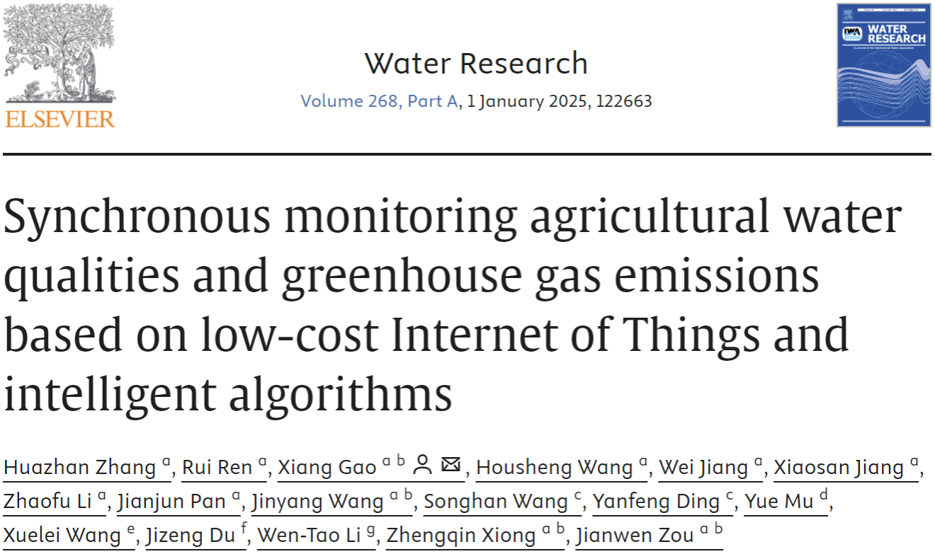 近日,Water Research上发表了题为“Synchronous monitoring agricultural water qualities and greenhouse gas emissions based on low-cost Internet of Things and intelligent algorithms”的研究论文(DOI: 10.1016/j.watres.2024.122663)。玩偶姐姐