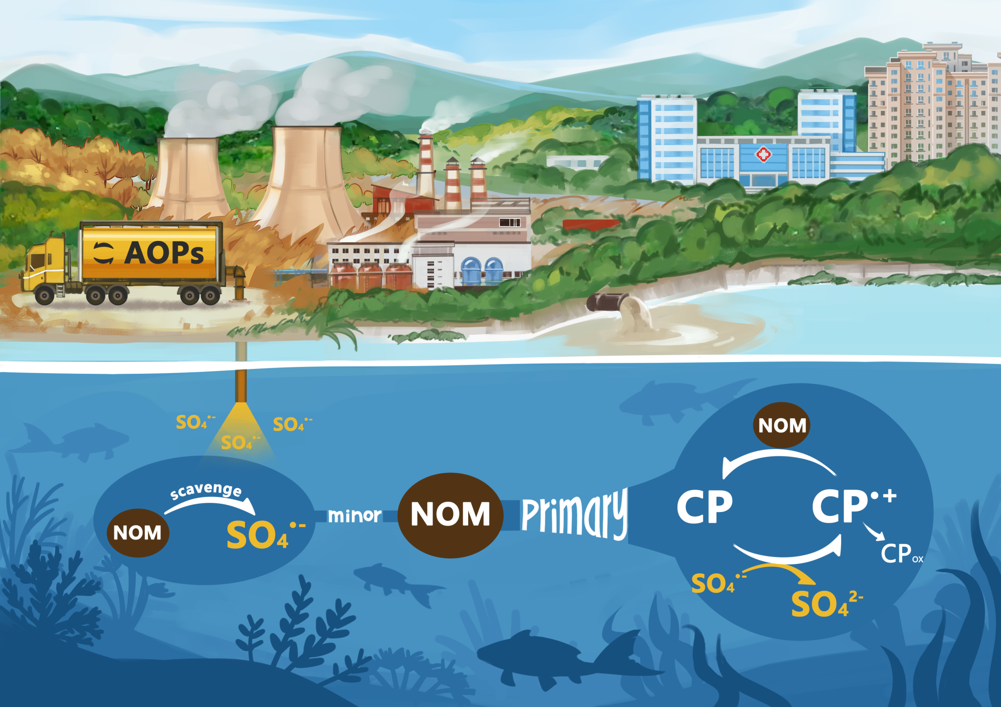 溶解性天然有机质(NOM)是水处理过程中无法回避的问题。在高级氧化过程中, NOM通常被认为是自由基清除剂,通过与羟基自由基(•OH)或硫酸根自由基(SO4−)反应,从而降低自由基的稳态浓度,导致污染物降解效率的降低。然而,目前对此过程中NOM清除自由基的作用还缺乏定量理解。